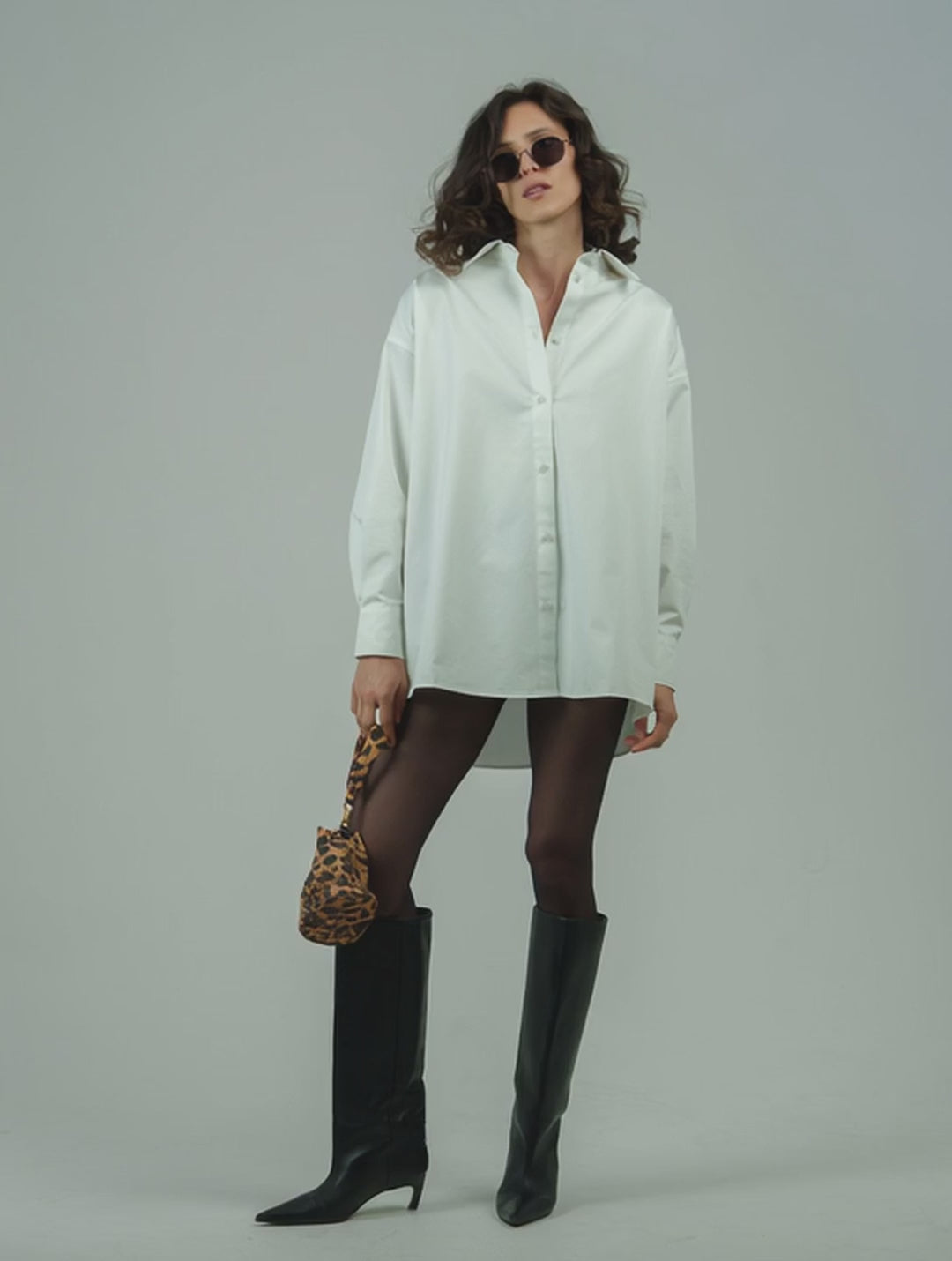 Our signature piece. A premium oversized shirt made from dense 100% cotton. Wrinkle-free, breathable, and versatile — the foundation of every wardrobe.